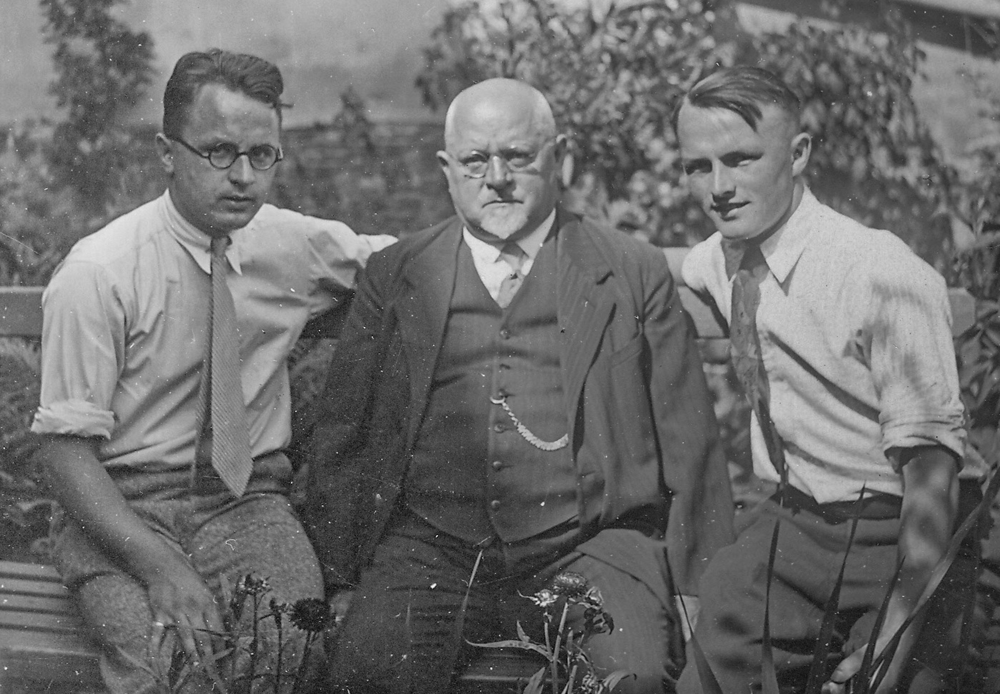 John with his father, Johann, and brother Philipp during his 1930 visit |