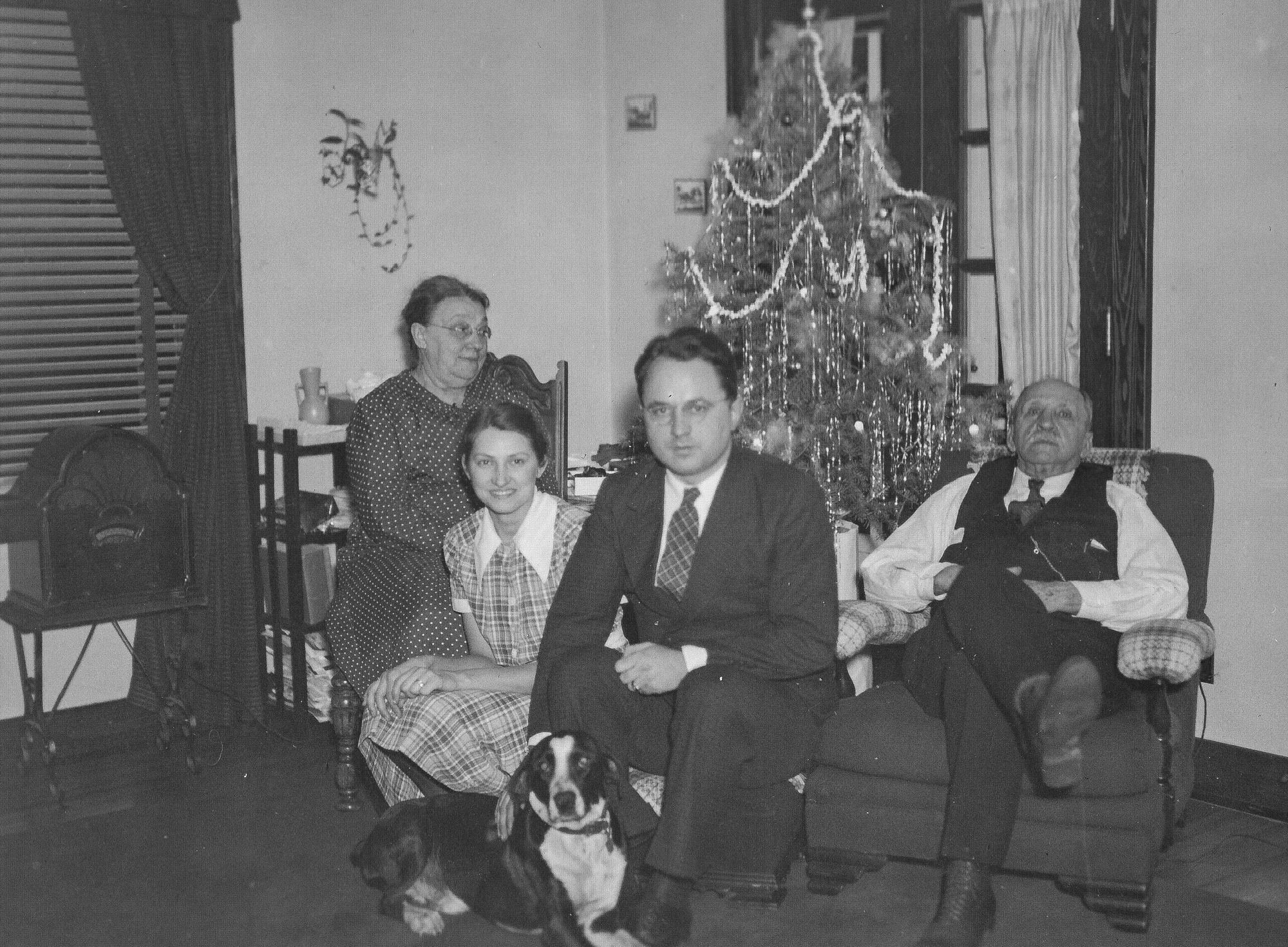 John celebrating Christmas with his wife, Eleanor, and Carrie and William Weinhardt, c. 1936-37 |
